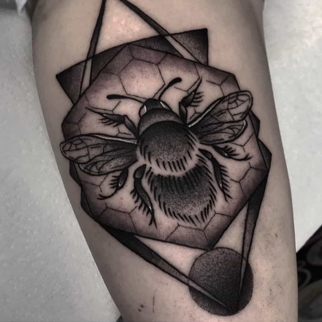 This example is one of my absolute favorite honeycomb bee tattoos, I think you’ll agree it’s pretty incredible!